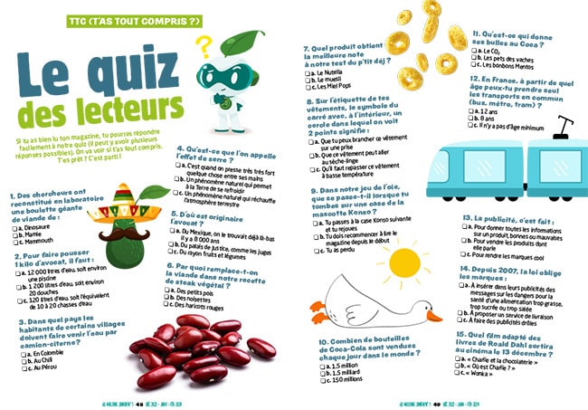 Dans 60 Millions Juniors, les jeunes lecteurs trouveront à la fois de quoi lire et s’informer afin de développer leur esprit critique et de leur donner les armes pour agir et réfléchir. Mais aussi des jeux et des quiz, pour revoir les notions expliquées dans le magazine.