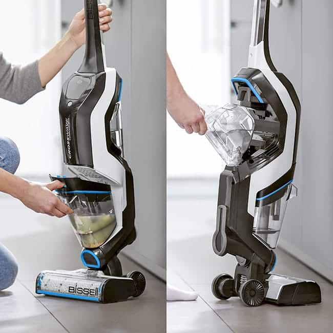 D’abord, désormais, il faut l’appeler CrossWave et il s’est transformé en aspirateur balai sans fil ! Et surtout, fini l’huile de coude, le moteur, ce n’est plus vous, puisqu’il s’est électrifié. Mais ce n’est pas tout, loin de là, puisqu’il s’agit d’un aspirateur balai qui aspire ET nettoie vos sols comme une serpillère ! Magique on vous dit !