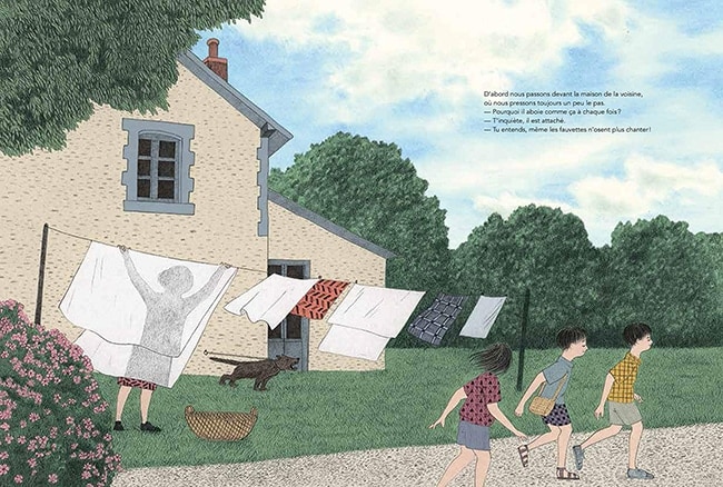 Cette promenade estivale, racontée et illustrée par Marie Dorléans, plonge les petits et leurs parents dans un grand bain d’enfance : qui n’a pas rêvé d’une cabane dans les arbres ? Ici, trois amis parcourent la campagne, tantôt tranquille, tantôt menaçante, pour aller jusqu’à leur refuge et découvrir s’il a résisté à la tempête.