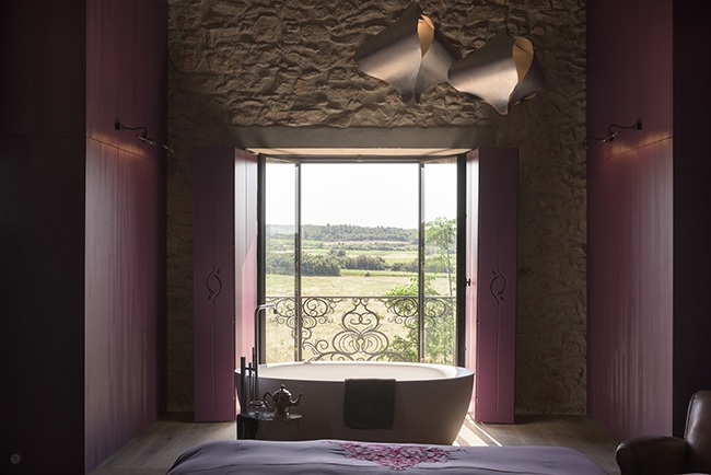 On peut aussi profiter des deux piscines de la Maison des Amis. Emprunter un vélo pour explorer la campagne. Et, surtout, il faut aller visiter les vignes du Château Castigno devenu une des plus belles références de l’AOC Saint-Chinian. Les 30 hectares de vignes, certaines très anciennes et toujours travaillées à la main et avec des chevaux, préservent l’environnement puisqu’étant en 100% bio. Au milieu s’élève un incroyable chai recouvert d’une peau de liège et qui à la forme d’une bouteille de vin géante ! La visite du domaine viticole de Château Castigno est hyper instructive et originale. Et l’on repart avec quelques belles bouteilles. Celles sérigraphiées avec un grand cœur ailé (rose et… fuchsia oui !) sont hyper choupinettes !