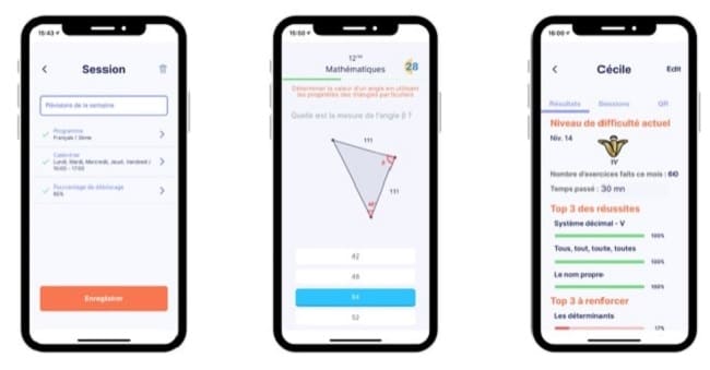 La réussite des exercices est la clé de déverrouillage de l’appareil. Une session peut prendre 10 à 20 minutes en fonction du niveau de difficulté, l’objectif étant de garder la motivation de l’enfant. Il s’exerce donc en continu tout en étant concentré au risque de ne pas réussir à déverrouiller ses applications récréatives. C’est ce qui fait l’efficacité de notre application.