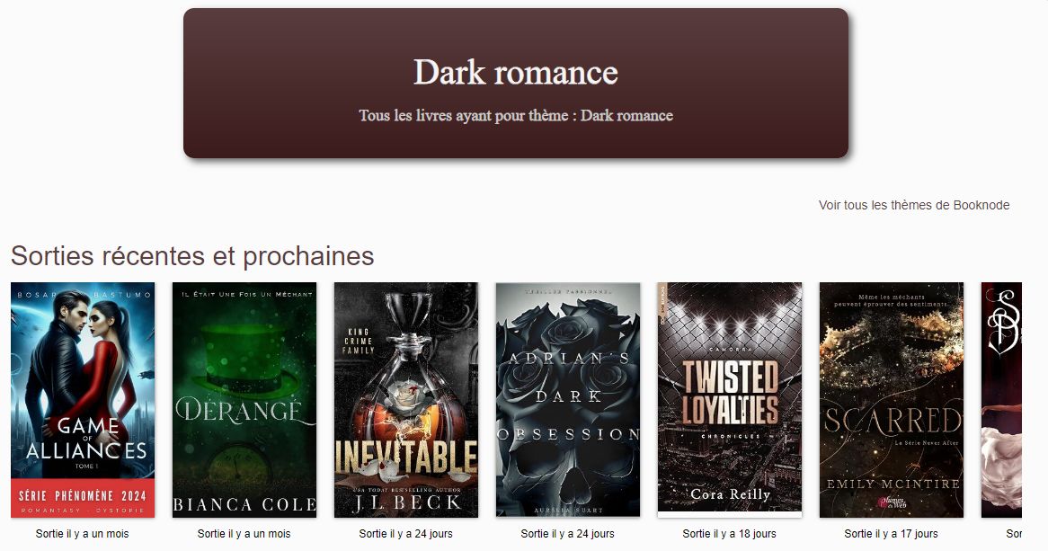 A écouter : Un épisode du podcast de Radio France « Reporterter » : La « dark romance », un genre littéraire qui malmène les jeunes femmes autant qu’il les fascine (septembre 2023) – Ecouter
