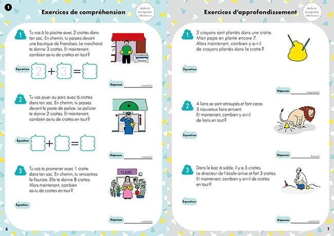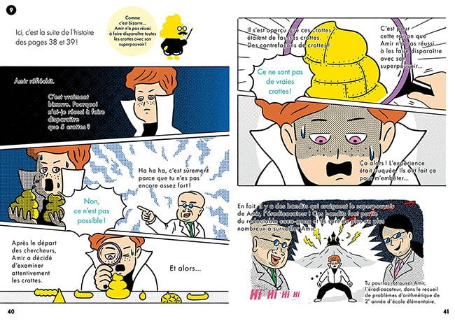 Leur univers est campé de façon vivante dans cette BD où chaque saynète est suivie de la notion mathématique qu’elle aborde, décryptée et expliquée, puis déclinée dans des exercices ludiques.