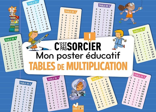 Mon poster éducatif Tables de Multiplication, Deux Coqs d’Or, 4,99 € – Commander sur la Fnac ou Amazon