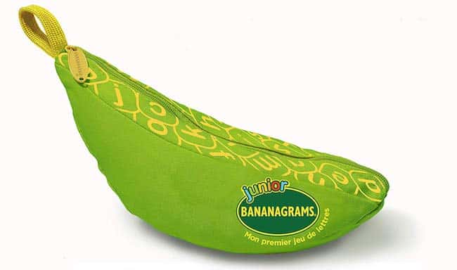 Bananagrams existe aussi en version junior, à partir de 5 ans, pour les enfants qui découvrent les lettres et ne savent pas encore lire. Bananagrams Junior propose 12 mini-jeux et activités classés par âges, des lettres minuscules avec cédilles et accents, des couleurs pour les distinguer, et les 13 doubles lettres les plus fréquentes.