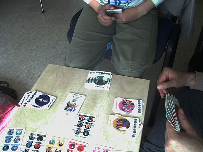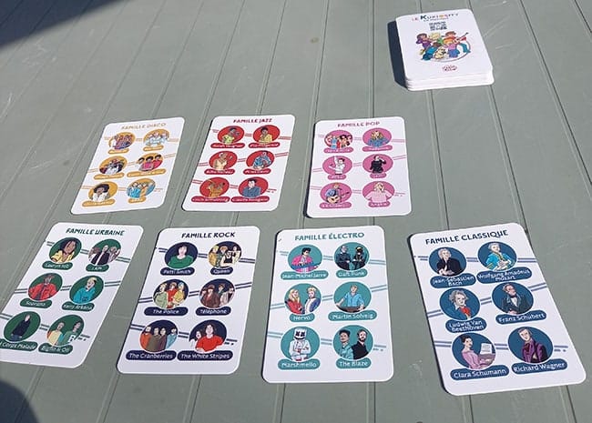 Avec les garçons, nous avons découvert ce nouveau jeu de 7 familles avec ce thème inédit : La musique. La mise en place est rapide car c’est un jeu de famille classique. Cependant nous décidons de poser sur la table les cartes détaillant les membres de chaque famille car certains artistes sont inconnus des enfants et/ou des adultes.