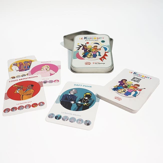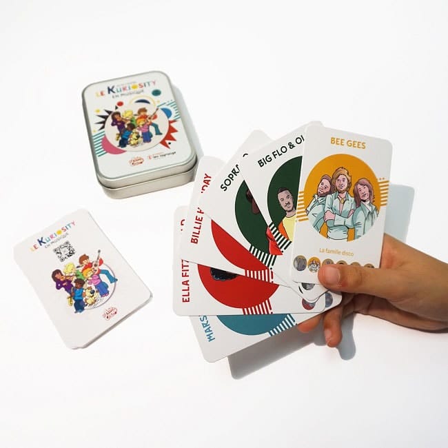 Le Kuriosity en musique est un jeu de 7 familles grâce auquel vous découvrirez des musiciens de toutes les époques à travers différents styles de musique : classique, jazz, disco, rock, électro, urbain et pop. Pour développer l’oreille musicale des plus jeunes et apprendre à reconnaitre les spécificités de chaque style, vous pourrez écouter les différentes musiques du jeu grâce à un QR code se trouvant au dos de chaque carte. Un jeu intergénérationnel qui promet de mettre l’ambiance !