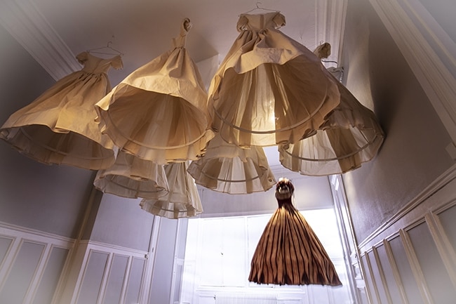 Une fois à l'intérieur, on déambule dans le roman de Flaubert à travers des pièces qui reconstituent des scènes du livre. Une scénographie ludique autour de mobilier extirpé des collections du Musée des traditions et arts normands, dessine un parcours onirique dans la vie, les passions et la mort d'Emma Bovary. De ses noces à sa garde robe fantasmée (une pièce où volent les robes à crinoline !), de ses escapades amoureuses à son ennui mortel, on vit viscéralement le roman en grimpant dans les étages de cette maison qui, si elle est hantée, l'est par le souvenir de cette femme dont l'envie de liberté raisonne toujours autant dans le cœur de bien des lectrices, 200 ans plus tard...