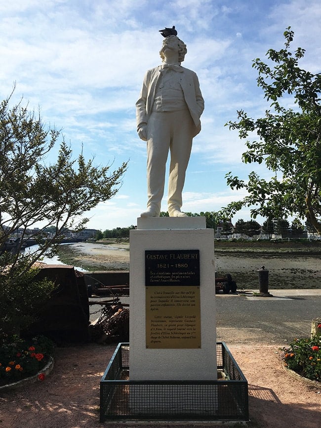 Cette dans cette petite station balnéaire que Gustave Flaubert venait passer des journées à la mer. Et c'est ici qu'il rencontre Elisa Schlesinger lorsqu'il a 15 ans. C'est la femme du propriétaire de l'Hotel Belle-Vue, de 10 ans son ainée (aujourd’hui le Mercure qui fait face au casino) et il en tombe éperdument amoureux. Une passion qui lui inspirera le roman L'Education sentimentale, et qui sera aussi présente dans Mémoire d'un fou... Dans le cadre de Flaubert 21, la ville a mis en place 200 panneaux à suivre pour parcourir le centre-ville de Trouville tout en s'amusant l'esprit à la découverte des citations de Flaubert reproduites qui sont parfois vachardes (Pour moi, la plus belle fille du monde ne vaut pas une virgule mise à sa place ou encore Quel homme aurait été Balzac s’il eût su écrire), souvent plein d'esprit (Il n’y a jamais eu de grands hommes vivants. C’est la postérité qui les fait) ou un peu désespérées (Le bonheur n’est pas de chercher le bonheur, mais d’éviter l’ennui. C’est faisable avec de l’entêtement ou encore Le bonheur est un mythe inventé par le diable pour nous désespérer).