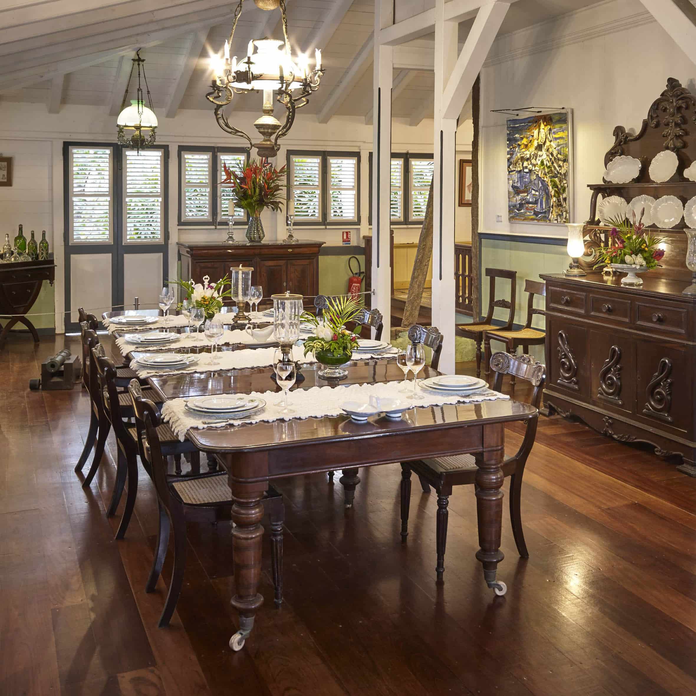Salle à manger cossue de l’Habitation Clément, à Le François- Photo : Jean-Baptiste Barret