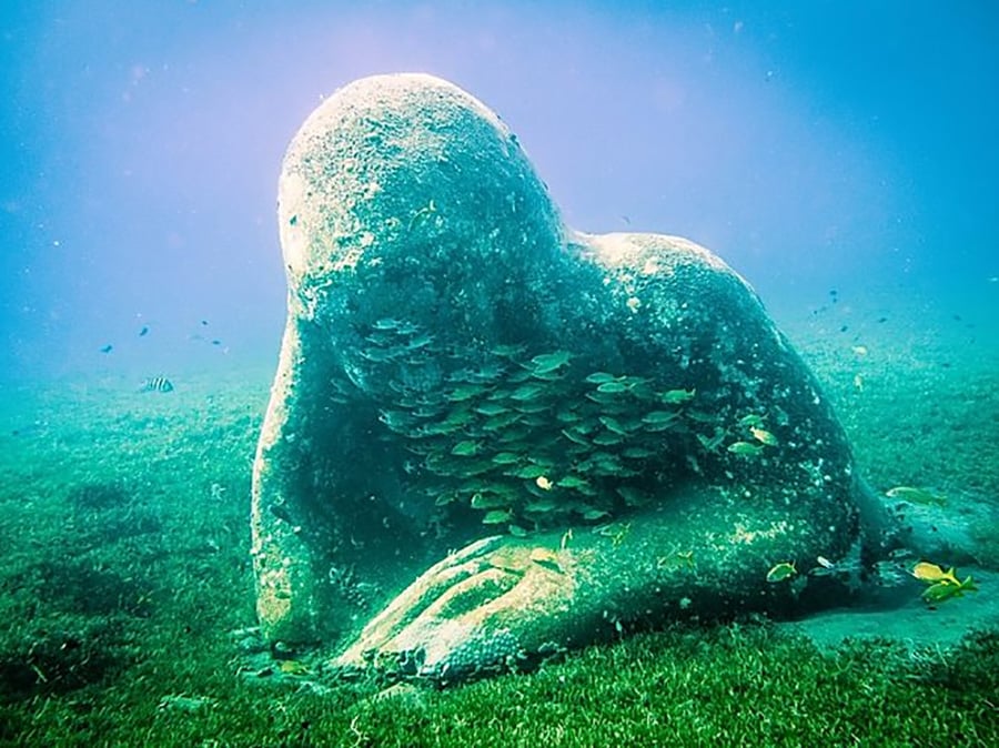 L’artiste Laurent Valère a disposé deux de ses œuvres sur l’île de la Martinique. La plus surprenante s’appelle Mamman Dlo et, pour la voir, il faut mettre masque, tuba et palmes ! En effet, cette statue de plus de 20 tonnes repose sous les eaux calmes de la baie de Saint-Pierre. Elle est facilement accessible depuis le rivage, et donc toute la famille peut s’offrir cette balade insolite. Manman Dlo signifie « la mère de l’eau » en créole. Mi-légende, mi-œuvre d’art, cette sculpture immergée est devenue un récif vivant, parfait pour voir les poissons qui y trouvent refuge et viennent se nourrir auprès de la flore qui s’y développe…