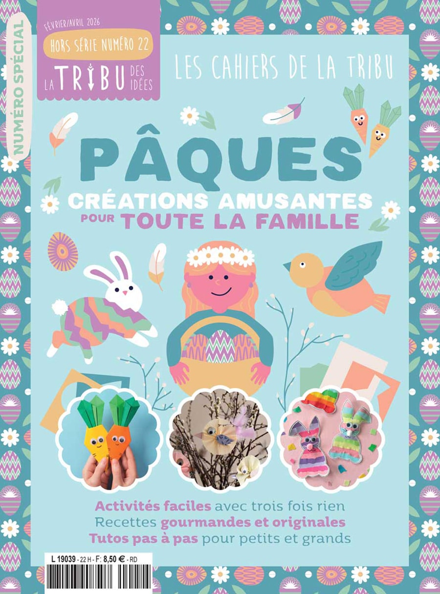 Décorations, pliages, recettes, petits jeux et créations amusantes : ce numéro spécial Pâques de La Tribu des Idées donne surtout envie de s’installer autour de la table et de créer ensemble, dans la joie et la bonne humeur.