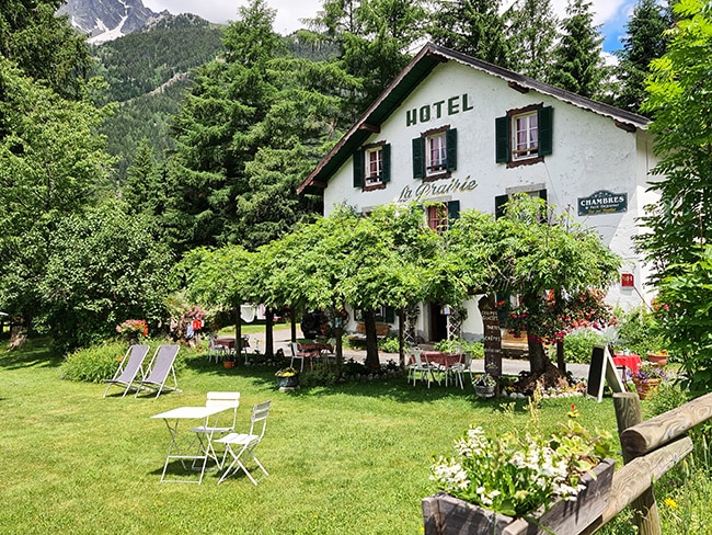 Il y a des adresses qui respirent l’authenticité, et le petit hôtel familial de La Prairie, dans le joli hameau des Bois, à deux pas de Chamonix, en fait partie. Geneviève, institutrice à la retraite, a repris l’hôtel construit par son arrière-grand-père en 1900, un peu à l’écart du village.