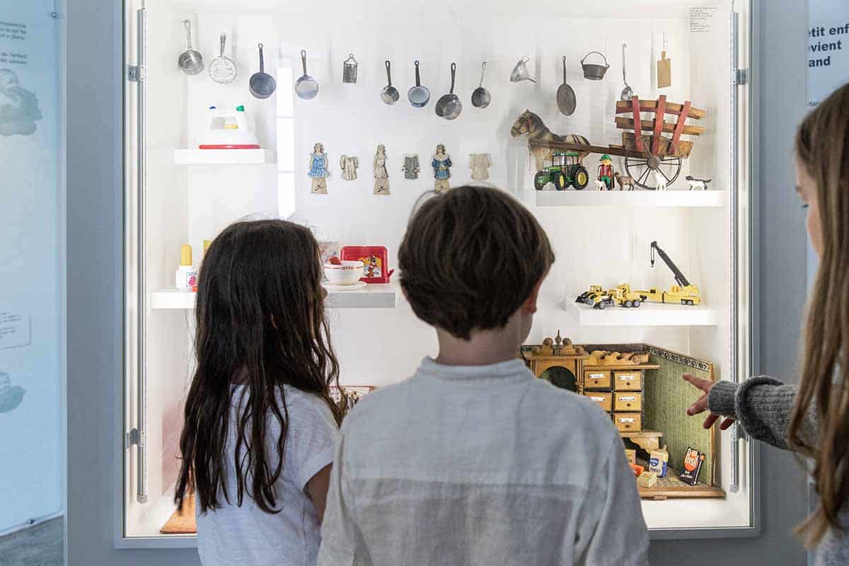 La visite se poursuit à l’étage, avec un espace muséographique sur la vie et les traditions bressanes moins immédiatement accessible pour les plus jeunes — sauf à s'armer du Rever' Baluchon. Si ce n’est la salle intitulée « Etre enfant du Revermont », qui illustre à travers de nombreux objets parfois surprenants la vie des enfants de la fin 19e au début 20e siècles. Pensez donc à demander à l’accueil le sac de jeux Rever' Baluchon, mis gratuitement à disposition. Grâce à ses 8 défis à résoudre en famille, la visite des collections (et du jardin) sera beaucoup plus motivante pour les plus jeunes.