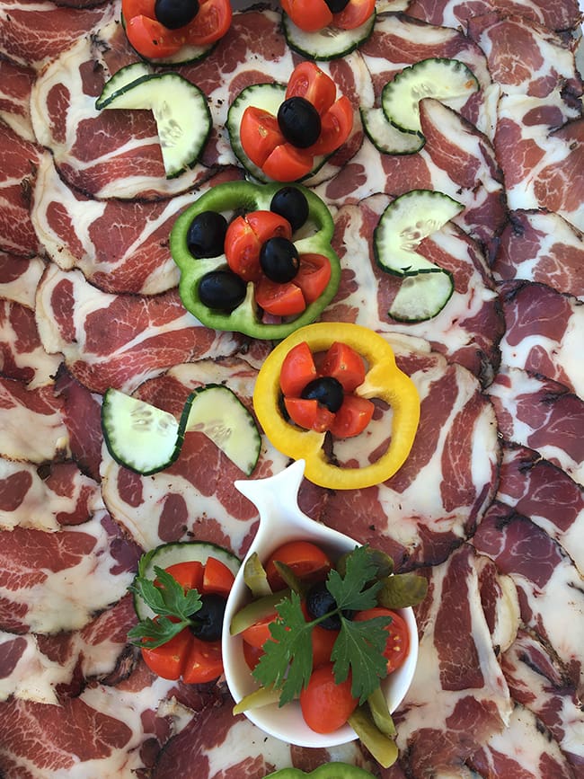 Et aussi goûtez la spécialité locale : le sokol de Nin. Une sorte de coppa, constituée avec du cou de porc salé et saupoudré de diverses épices. Séché aux embruns venus des montagnes et fumé, il se déguste à l’apéro en fines tranches et si vous avez la chance d’en trouver, faites des provisions car il n’y a qu’ici que l’on en déniche. Et cette charcuterie est sacrément bonne !